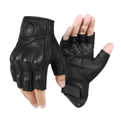 モトウルフハーフフィンガーオートバイ手袋革ガンテスモトサイクリングフィンガーレス手袋レトロ通気性サマー手袋
